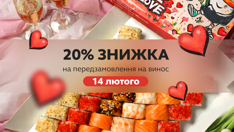 Встигни оформити попереднє замовлення на винос зі знижкою 20% за промокодом "LOVE".